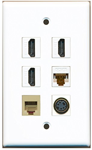 RiteAV - 3 HDMI 1 Port Phone RJ11 RJ12 Beige 1 Port S-Video 1 Port Cat6 Ethernet White Wall Plate