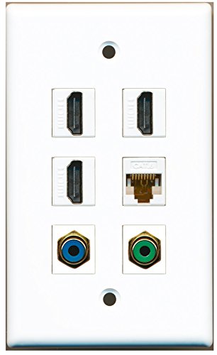 RiteAV - 3 HDMI 1 Port RCA Green 1 Port RCA Blue 1 Port Cat6 Ethernet White Wall Plate