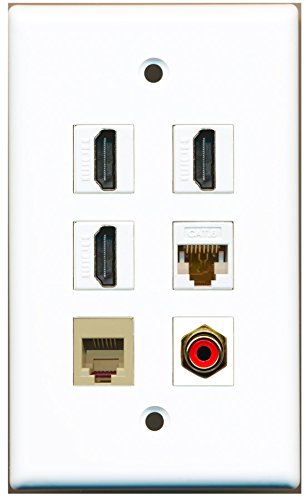 RiteAV - 3 HDMI 1 Port RCA Red 1 Port Phone RJ11 RJ12 Beige 1 Port Cat6 Ethernet White Wall Plate