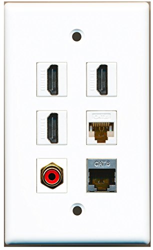 RiteAV - 3 HDMI 1 Port RCA Red 1 Port Shielded Cat6 Ethernet 1 Port Cat6 Ethernet White Wall Plate