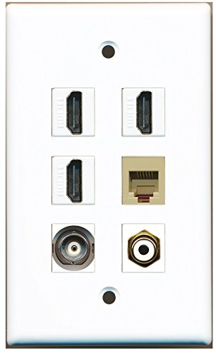 RiteAV - 3 HDMI 1 Port RCA White 1 Port Phone RJ11 RJ12 Beige 1 Port BNC Wall Plate