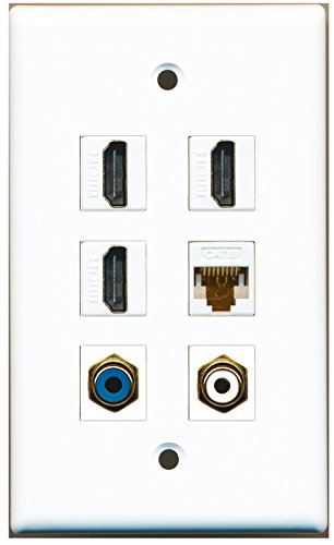 RiteAV - 3 HDMI 1 Port RCA White 1 Port RCA Blue 1 Port Cat6 Ethernet White Wall Plate