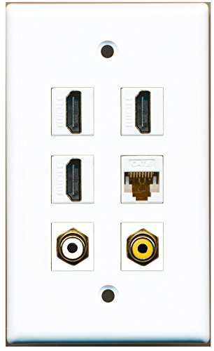 RiteAV - 3 HDMI 1 Port RCA White 1 Port RCA Yellow 1 Port Cat6 Ethernet White Wall Plate