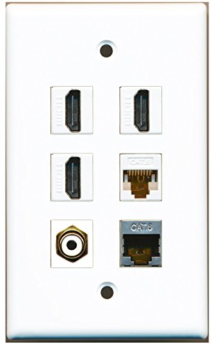 RiteAV - 3 HDMI 1 Port RCA White 1 Port Shielded Cat6 Ethernet 1 Port Cat6 Ethernet White Wall Plate