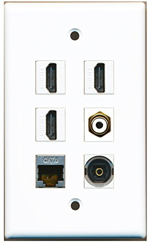 RiteAV - 3 HDMI 1 Port RCA White 1 Port Shielded Cat6 Ethernet 1 Port Toslink Wall Plate