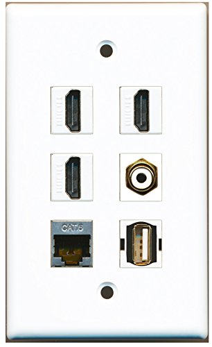 RiteAV - 3 HDMI 1 Port RCA White 1 Port USB A-A 1 Port Shielded Cat6 Ethernet Wall Plate