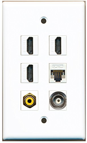 RiteAV - 3 HDMI 1 Port RCA Yellow 1 Port BNC 1 Port Cat5e Ethernet White Wall Plate
