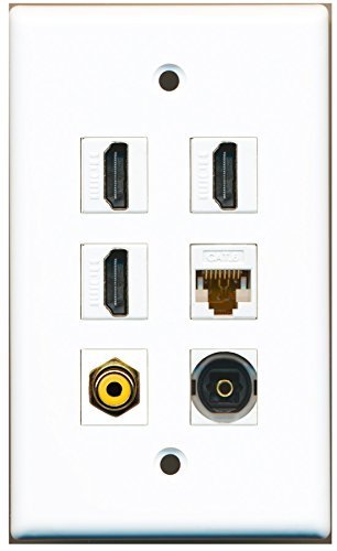 RiteAV - 3 HDMI 1 Port RCA Yellow 1 Port Toslink 1 Port Cat6 Ethernet White Wall Plate