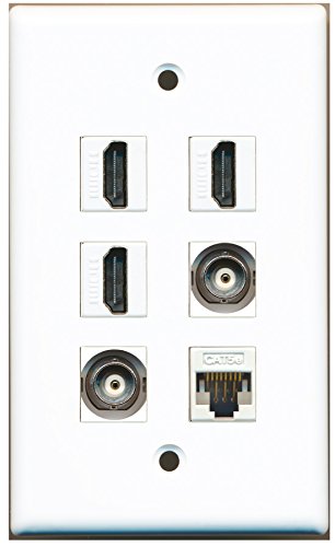 RiteAV - 3 HDMI 2 Port BNC 1 Port Cat5e Ethernet White Wall Plate