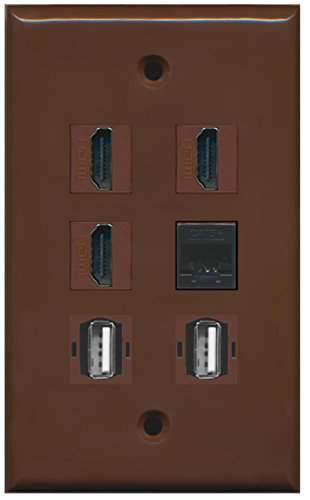 RiteAV - 3 HDMI 2 Port USB A-A 1 Port Cat5e Ethernet Wall Plate - Brown