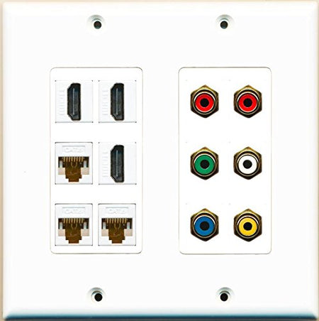 RiteAV 3 Hdmi 3 Cat6 RCA Composite and Component Video Stereo Wall Plate White