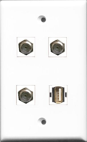 RiteAV - 3 Port Coax Cable TV- F-Type and 1 Port USB A-A Wall Plate