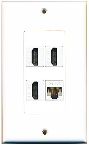RiteAV - 3 Port HDMI 1 Port Cat5e Ethernet White Wall Plate Decorative