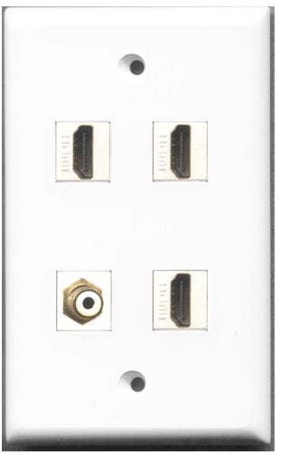 RiteAV - 3 Port HDMI 1 Port RCA White Wall Plate