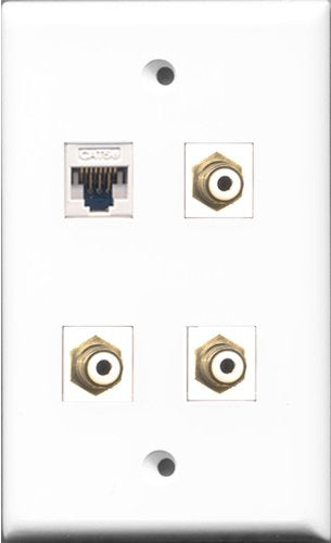 RiteAV - 3 Port RCA White and 1 Port Cat5e Ethernet White Wall Plate