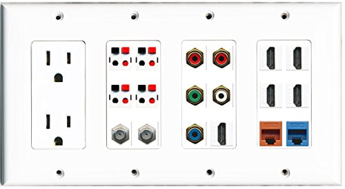 RiteAV - (4 Gang) 15A Outlet 5 HDMI 2 Coax-Cat5e Component 4 Speaker Jack Wall Plate