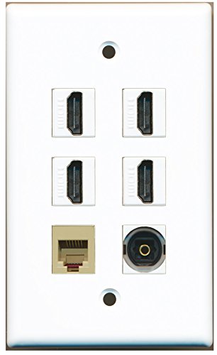 RiteAV - 4 HDMI 1 Port Phone RJ11 RJ12 Beige 1 Port Toslink Wall Plate