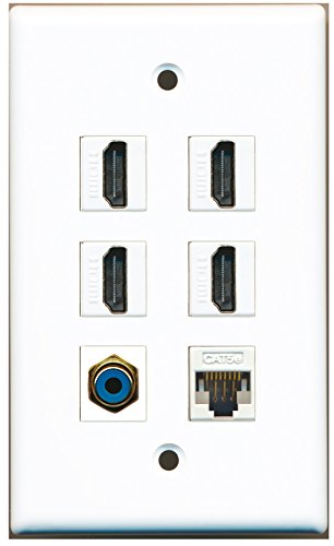 RiteAV - 4 HDMI 1 Port RCA Blue 1 Port Cat5e Ethernet White Wall Plate