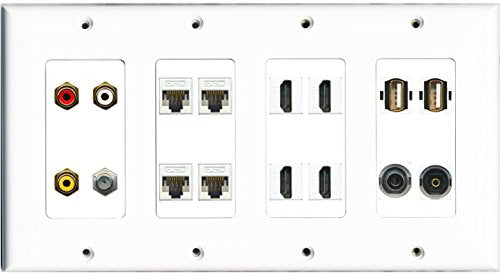 RiteAV 4 Hdmi 3.5mm 4 Cat5e Coax Composite RCA Toslink 2 Usb A-A Wall Plate