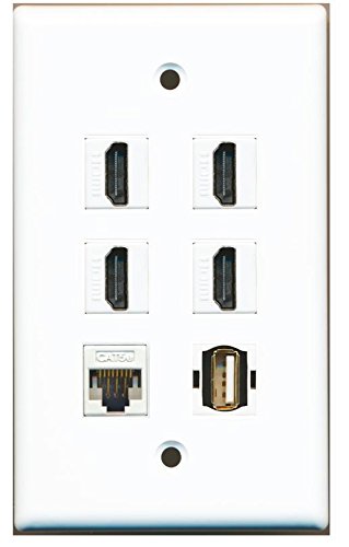 RiteAV - 4 HDMI and 1 Ethernet Cat5e and 1 USB A/A Port Wall Plate White