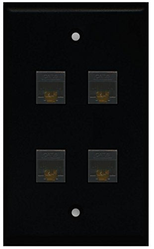 RiteAV - 4 Port Cat6 Ethernet Wall Plate - Black