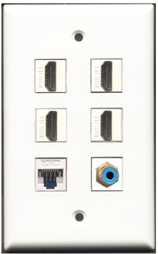 RiteAV - 4 Port HDMI 1 RCA Blue 1 Cat5e Ethernet White Wall Plate