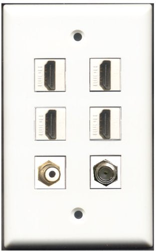 RiteAV - 4 Port HDMI 1 RCA White 1 Coax Cable TV- F-Type Wall Plate