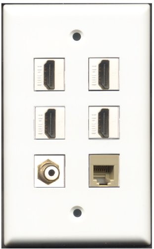 RiteAV - 4 Port HDMI 1 RCA White 1 Phone RJ11 RJ12 Beige Wall Plate