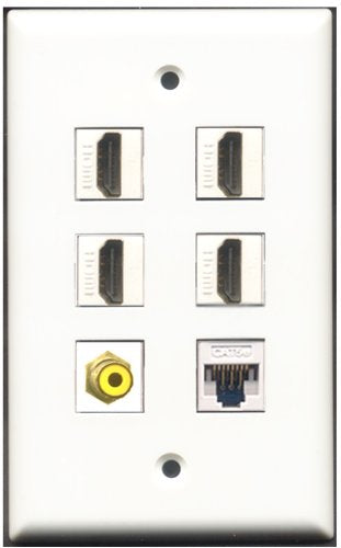 RiteAV - 4 Port HDMI 1 RCA Yellow 1 Cat5e Ethernet White Wall Plate
