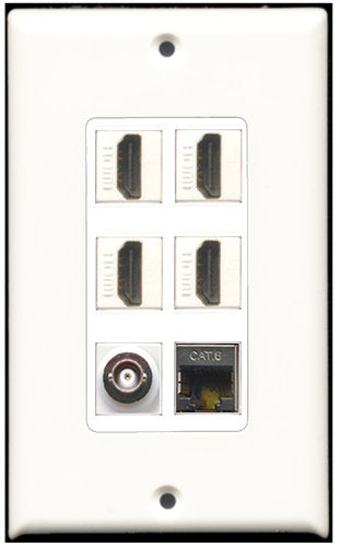 RiteAV - 4 Port HDMI 1 Shielded Cat6 Ethernet 1 BNC Wall Plate White