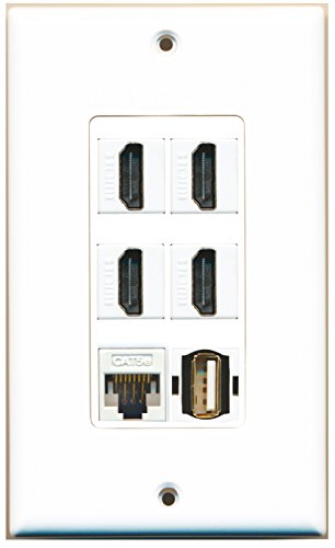 RiteAV - 4 Port HDMI 1 USB A-A 1 Cat5e Ethernet White Wall Plate Decorative