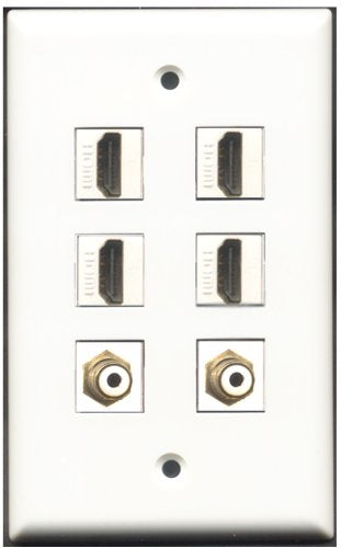 RiteAV - 4 Port HDMI 2 Port RCA White Wall Plate
