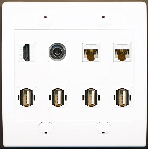 RiteAV 4 x USB 2 x Cat6 Ethernet 1 HDMI and 1 x 3.5mm Audio Wall Plate
