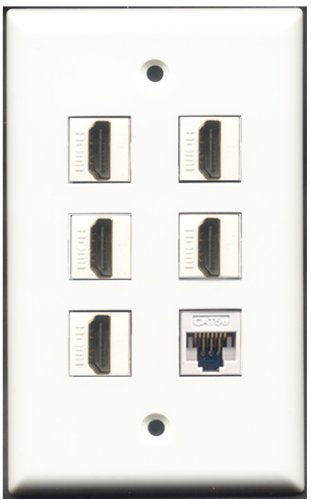 RiteAV - 5 Port HDMI 1 Cat5e Ethernet White Wall Plate