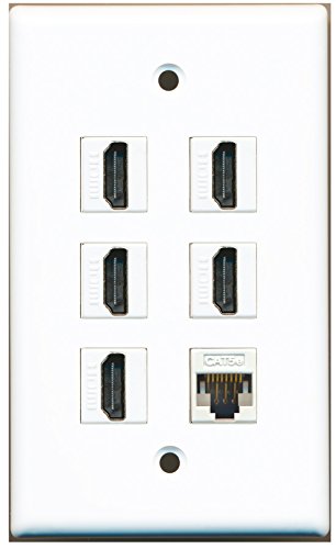RiteAV - 5 x HDMI and 1 x Cat5e Ethernet Port Wall Plate White