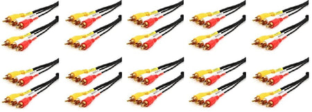 Details: RiteAV's Composite Video/Stereo Audio Cables deliver high quality performance for your A/V equipment. Their heavy duty shielding ensures crisp, clear transmission that is free from jitter. The connectors are corrosion-resistant and composed of premium, polished metal which results in a better capacity for transmitting pure sound and sharp analog video. They are also color-coded (Yellow - Composite Video, Red - Right Audio Channel and White - Left Audio Channel) to ensure quick and easy identification of each connector. The conductors are made from Oxygen Free Copper which provide superior conductivity and sonic accuracy. Its construction and shielding prevents cross talk and safeguards the cable from EMI/RFI and noise, therefore providing a more stable, reliable and accurate data transfer yielding exceptional results. An integrated strain relief provides a snagless, low profile connection and the durable jacket ensures a long service life. The Composite Cables are commonly used with A/V equipment and devices like TVs, projectors, home theater systems, receivers, amplifiers, radios, Hi-Fi Audio Systems, speakers, recording equipment and more. RiteAV offers a wide variety of high-quality Audio/Video Cabling to suit all of your connection requirements, so be sure to check out our full catalog of products. This listing is for a 10 Pack.