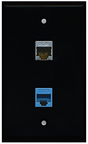 RiteAV - Black 1 Port Cat5e Ethernet Blue 1 Port Cat6a Wall Plate
