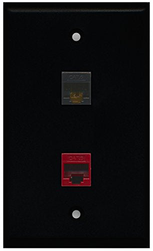 RiteAV - Black 1 Port Cat6 Ethernet Black 1 Port Cat6 Ethernet Red Wall Plate