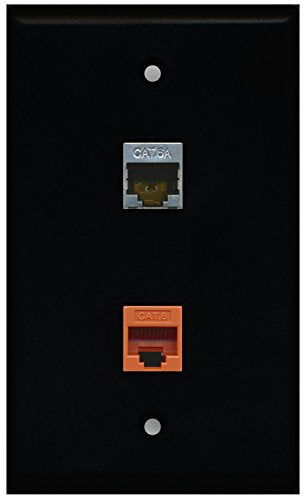 RiteAV - Black 1 Port Cat6 Ethernet Orange 1 Port Cat6a Wall Plate