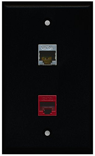 RiteAV - Black 1 Port Cat6 Ethernet Red 1 Port Cat6a Wall Plate