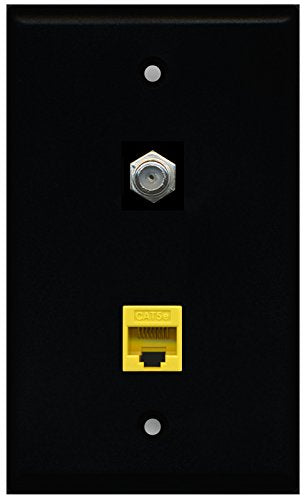 RiteAV - Black 1 Port Coax Cable TV- F-Type 1 Port Cat5e Ethernet Yellow Wall Plate