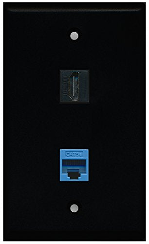 RiteAV - Black 1 Port HDMI 1 Port Cat5e Ethernet Blue Wall Plate