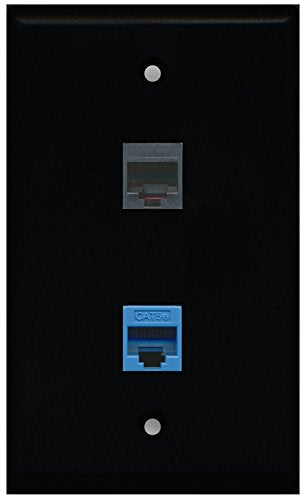 RiteAV - Black 1 Port Phone Black 1 Port Cat5e Ethernet Blue Wall Plate