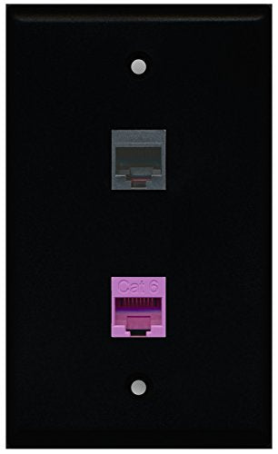 RiteAV - Black 1 Port Phone Black 1 Port Cat6 Ethernet Purple Wall Plate