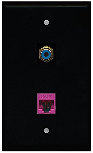 RiteAV - Black 1 Port RCA Blue 1 Port Cat5e Ethernet Pink Wall Plate