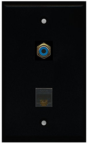 RiteAV - Black 1 Port RCA Blue 1 Port Cat6 Ethernet Black Wall Plate