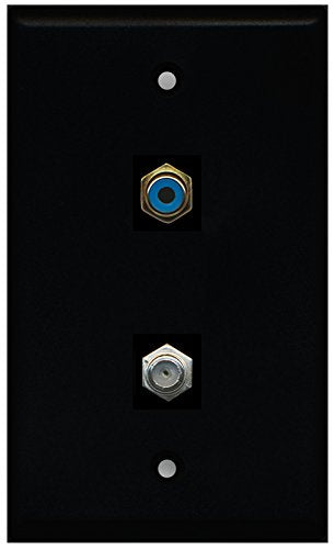 RiteAV - Black 1 Port RCA Blue 1 Port Coax Cable TV- F-Type Wall Plate