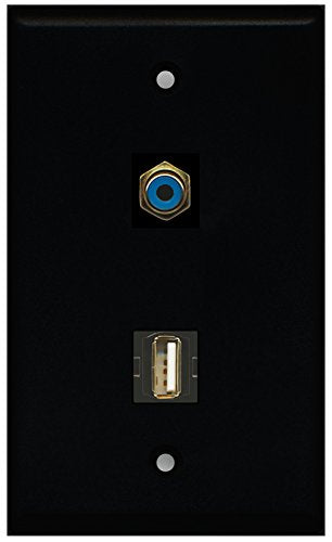 RiteAV - Black 1 Port RCA Blue 1 Port USB A-A Wall Plate