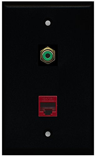 RiteAV - Black 1 Port RCA Green 1 Port Cat6 Ethernet Red Wall Plate