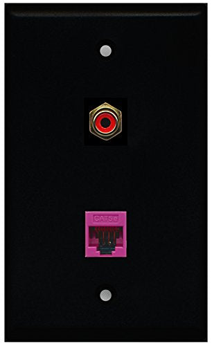 RiteAV - Black 1 Port RCA Red 1 Port Cat5e Ethernet Pink Wall Plate